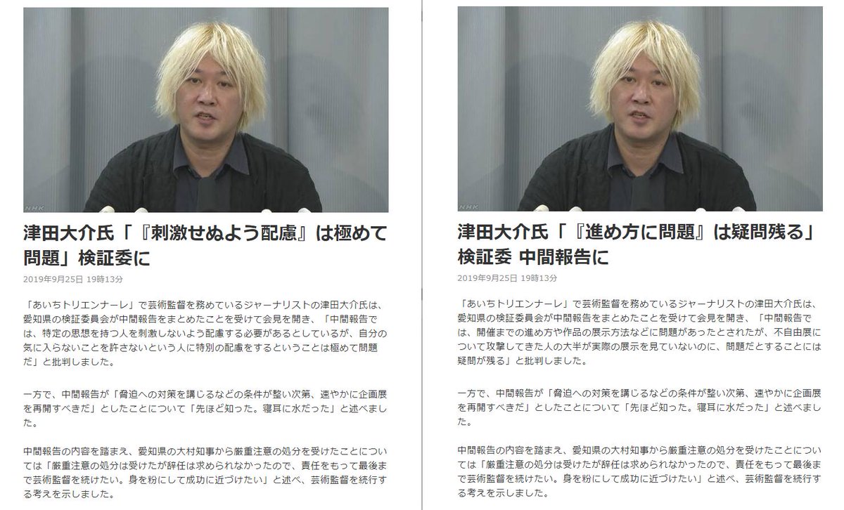 「あいちトリエンナーレ」で芸術監督を務めているジャーナリストの津田大介氏は、愛知県の検証委員会が中間報告をまとめたことを受けて会見を開き、