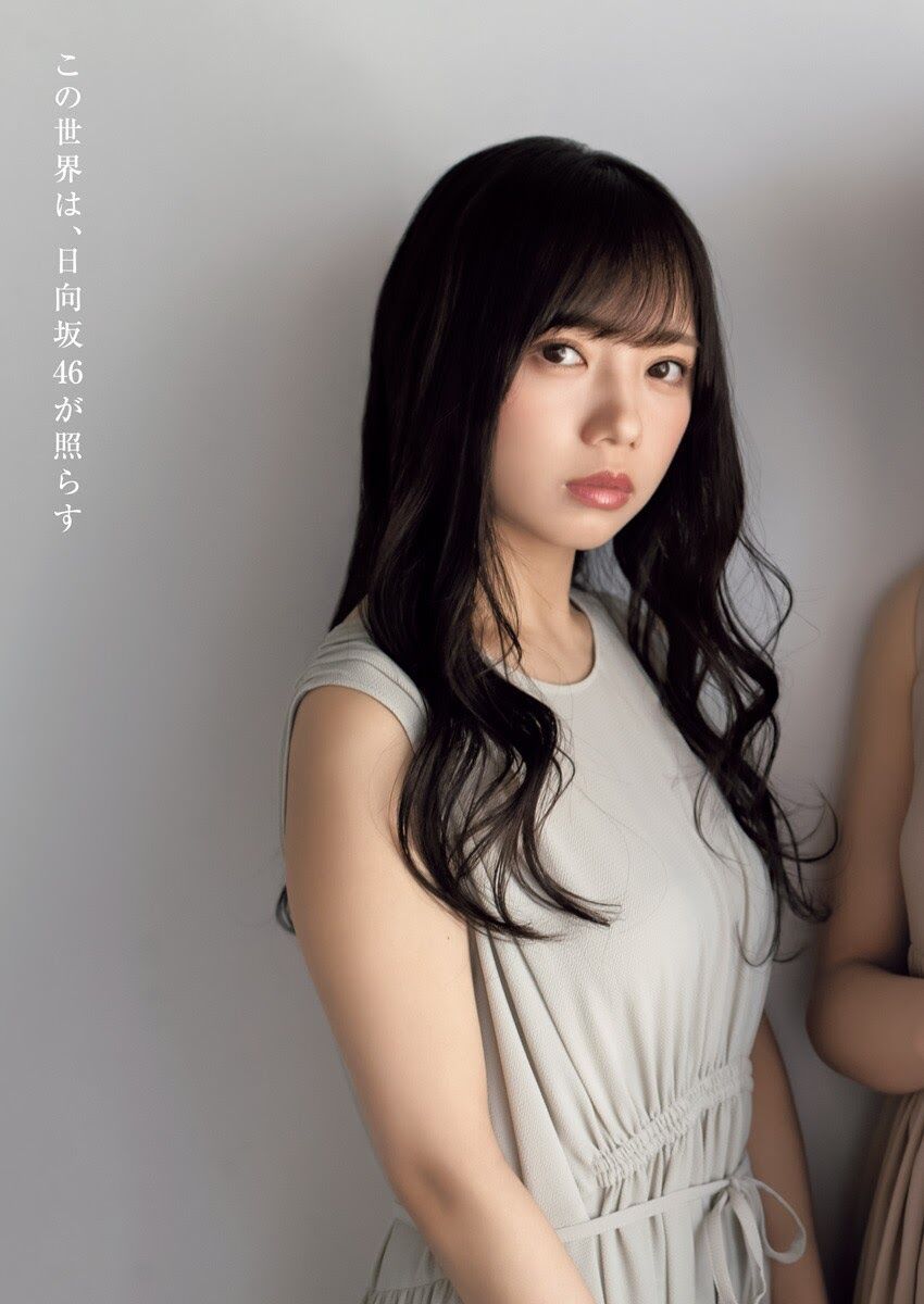 白のキャミソールからすらりと伸びる透明感のある肌。ピュアで儚げで、巻頭の3人とはまた違った柔らかい存在感が光っている。至近距離で触れ合う二人のまっすぐな視線が、カメラのレンズを通り越して、誌面からこちらに届く。贅沢な瞬間だ。「ピュア&ガーリー」なかわいさに、ただただ癒されるツーショット。この号を通して、日向坂46の層の分厚さを改めて実感した。