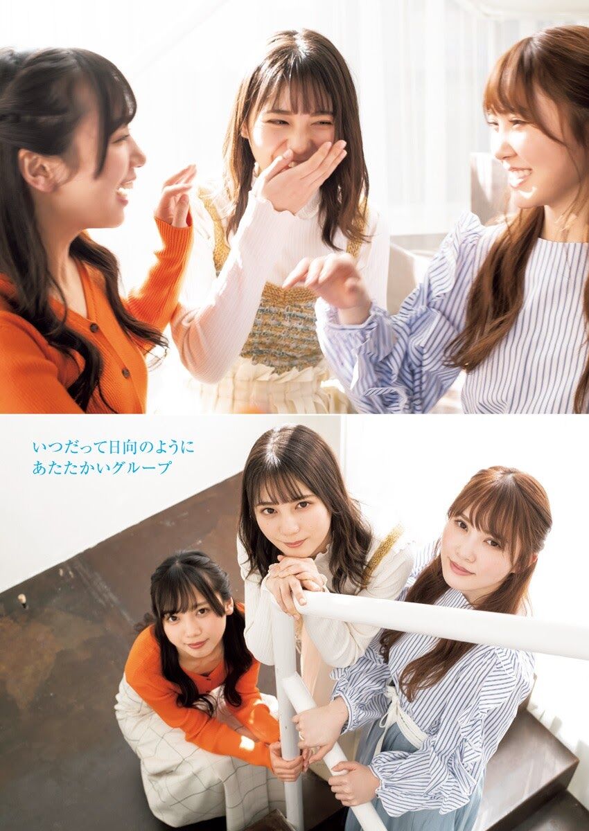 巻頭グラビアに登場したのは、加藤史帆、齊藤京子、小坂菜緒の3名。彼女たちの共通点は、改名前のけやき坂46時代を含めセンターポジションに立ったことのあるメンバーであり、加藤史帆は『CanCam』、齊藤京子は『ar』、小坂菜緒は『Seventeen』と、それぞれ人気ファッション誌の専属モデルを務めていることだ。グループの内外で日向坂46を引っ張るエースたちが集うグラビアは、とてつもなく明るいオーラに満ちている。