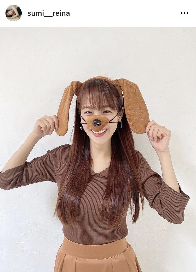 鷲見アナは「HappyHalloween 先日セントフォースchannelの撮影でこんな格好をしました」と記し、犬の耳と鼻をつけ全身茶色の服を着て、茶色の犬に仮装した写真を投稿。