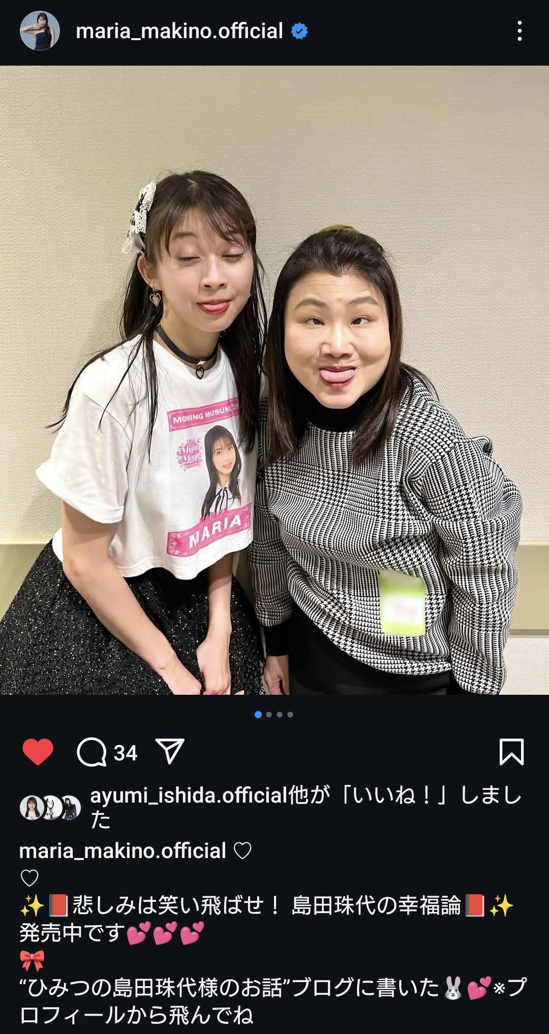 | 「さすがすぎる」モー娘。牧野真莉愛、吉本新喜劇・島田珠代との“変顔”SHOTに反響「それでもかわいいが勝つ」 …4月23日、モーニング娘。'25の牧野真莉愛がSNSを更新した。 現在『モーニング娘。’25 コンサートツアー春 ~Mighty Magic~』を開… (出典:) |
